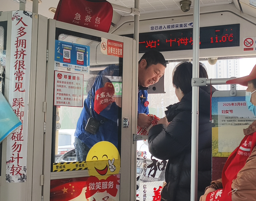 2004年12月,缪立众结束十余年军旅生涯,转业投身公交事业。从“国防绿”到“公交蓝”,转变的是身份,不变的是初心。他始终秉持“乘客满意,就是自己的人生追求”这一质朴承诺,在十米车厢内以特色优质的服务温暖人心,以平凡的微光照亮沈城,驶向为人民服务的每一站。其独特的“站立式”迎客服务,真诚周到,广受乘客赞誉。特别是在沈阳文旅宣传热潮中,他的特色车厢与贴心服务,成为展示城市形象的流动名片,生动体现了沈阳公交的优质服务与良好的营商环境。